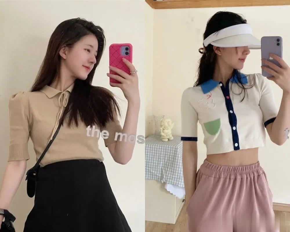 不得不说,她真的超爱穿短上衣,搭配短裙或运动裤都活力满满。她在短上衣选择上很有心思,不是有绑带设计就是撞色款,不选普通款式。