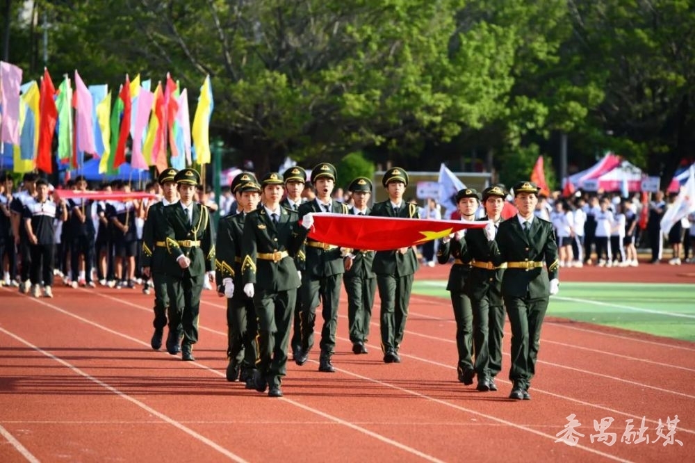 比赛现场,禺山高级中学国旗护卫队队员们身着统一制服,身姿挺拔如松,步伐铿锵有力。从入场列队、正步行进到国旗擎起、精准升旗,每一个环节都衔接流畅,每一个动作都整齐划一。摆臂的高度、迈步的间距、升旗的速度,无不展现出队员们扎实的训练功底;眼神中的坚定、面容上的庄重,更传递出对国旗的无限崇敬与热爱。他们以规范标准的仪式流程、昂扬向上的精神状态,赢得了评委团的一致好评和现场观众的阵阵掌声。